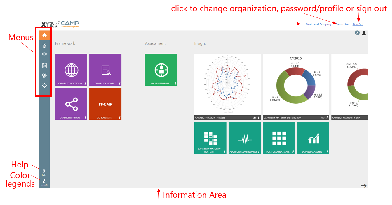 CAMP attempts to provide consistent experience across all pages. The standard design layout, navigation methods, action icons, and interaction elements are used where appropriate for simplicity and ease of use.